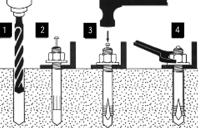 แองเคอร์สไตรค์ได้รับการออกแบบมาสำหรับการทอดสมอเป็นคอนกรีต ใส่จุดยึดการนัดหยุดงานลงในหลุมเจาะไว้ล่วงหน้าในคอนกรีต ตั้งจุดยึดโดยการตีเล็บลงในจุดยึด เล็บขยายจุดยึดการนัดหยุดงานในคอนกรีต